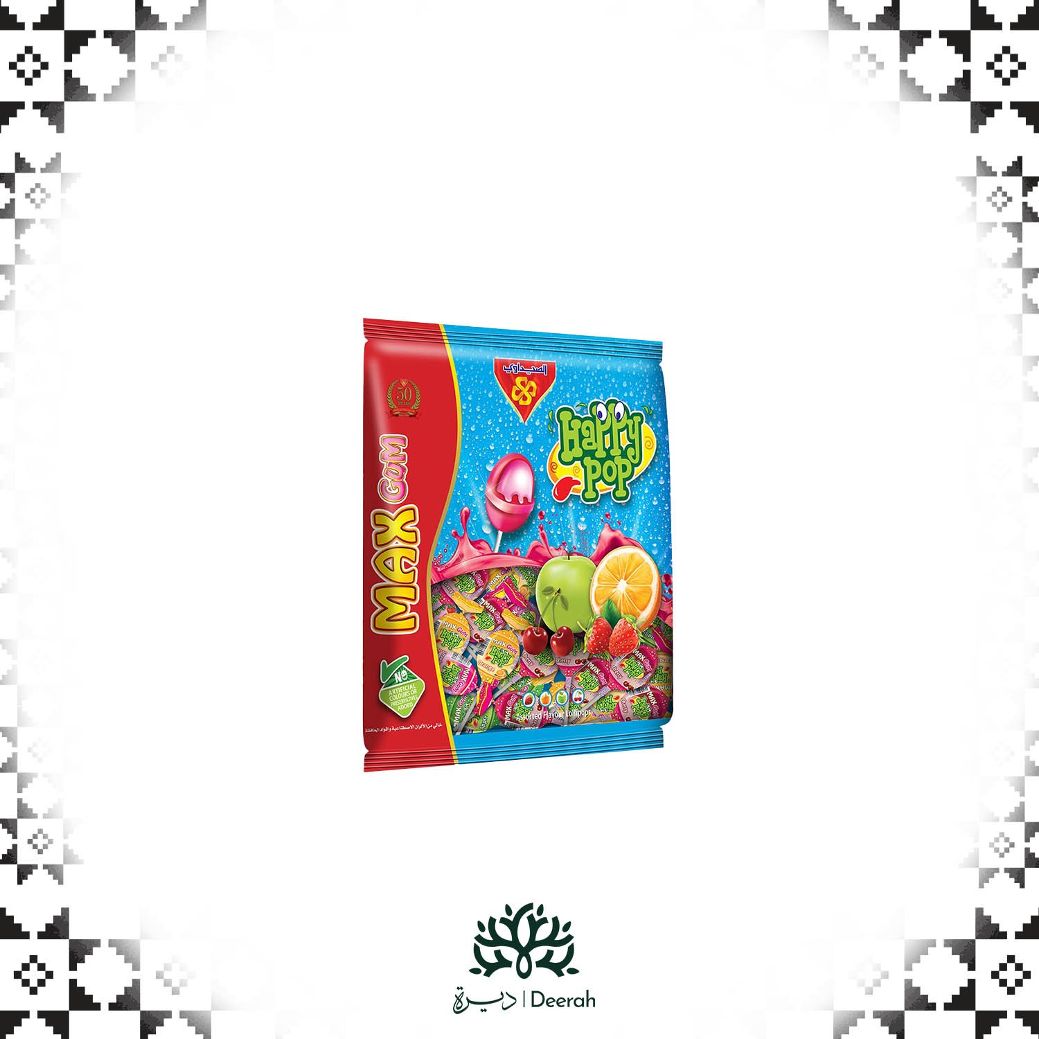 حلوى مصاص هابي بوب فواكه مع علكة 48*20 جرام
